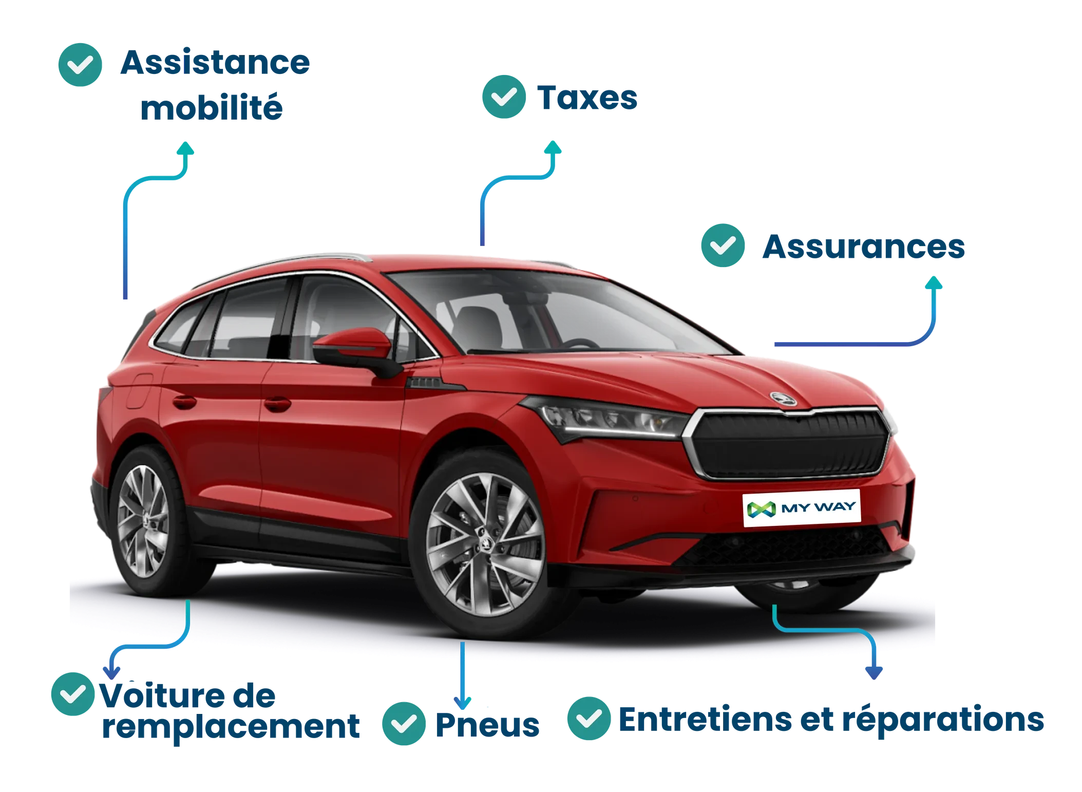 Que vous optiez pour un leasing opérationnel ou un renting financier (avec option d’achat), tout ce dont vous avez besoin est toujours inclus chez My Way Lease :